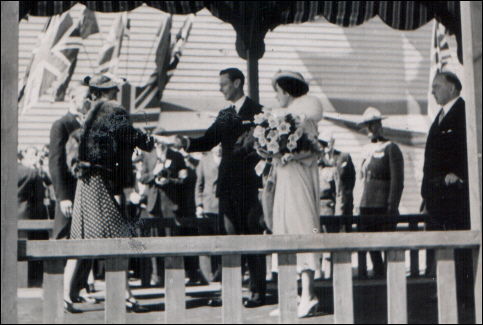 | His Worship Mayor Creaghan and Mrs. Creaghan welcome King George VI and Queen Elizabeth (The Queen Mother) to Newcastle as Prime Minister Mackenzie King looks on (Source: Sandra Bunting)