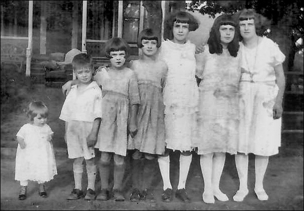 This photo of seven of Thérèse’s siblings (Thérèse and her brother Loyola were not born yet) was taken in October 1922 in front of the Convent of the Sacred Heart in Saint-Joseph, New Brunswick. From left to right: Colombe, Ulysse, Antoinette, Angéline, Berthe, Hermance, and Anita (Source: Paul Giovannetti)