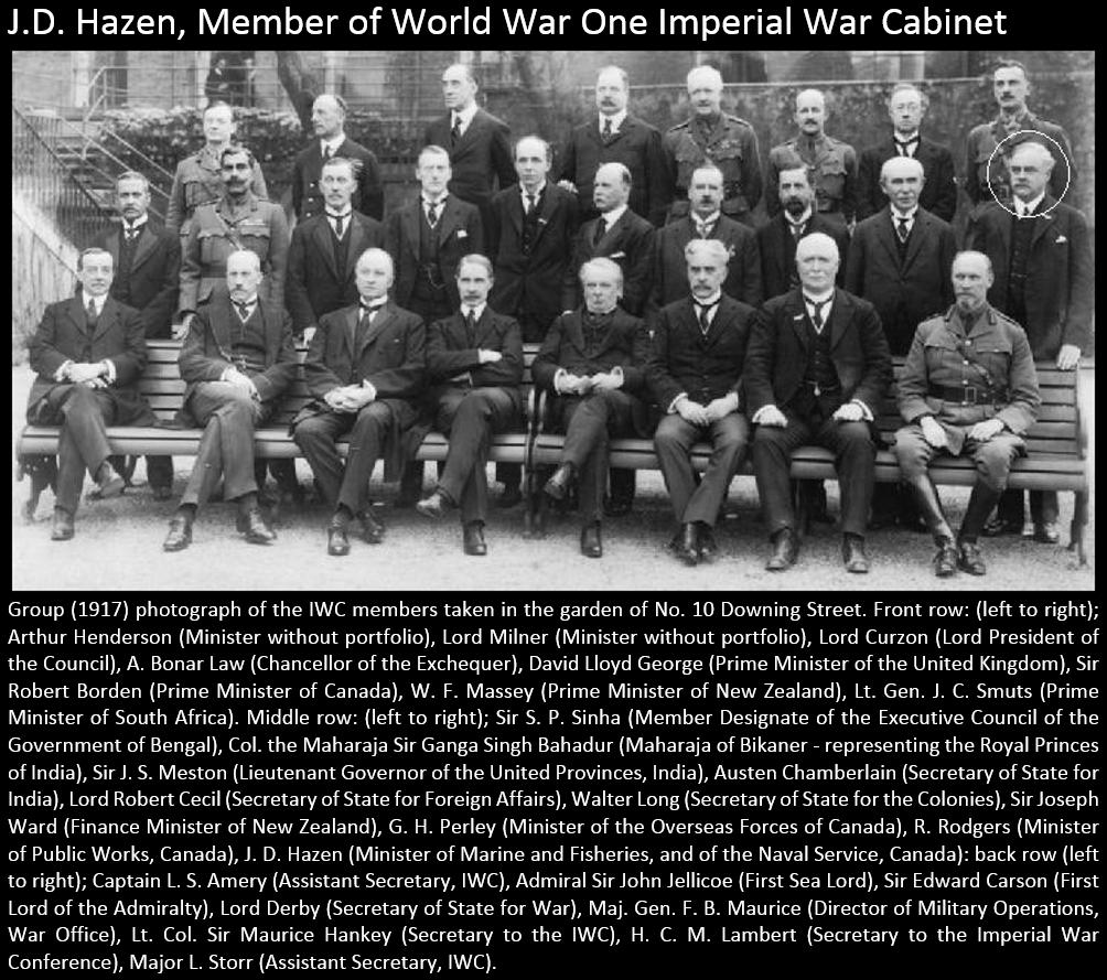 Douglas Hazen left provincial politics in 1911 to become federal Minister of Marine and Fisheries and Minister of the Naval Service in the government of Sir Robert Borden. During the First World War, he served in the Imperial War Cabinet. Hazen left politics in October 1917 to become Chief Justice of New Brunswick.